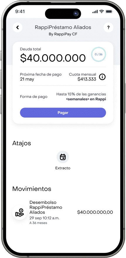 Un préstamo para tu comercio en Rappi, el impulso que necesitas, por ser nuestro aliado.